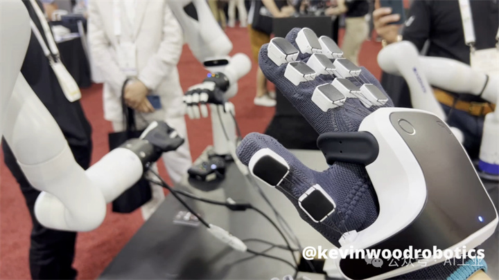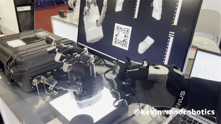 之后是Kobe Robotics的机器人手。该手由6个执行器驱动,采用以太网进行通信,兼容ROS与Python开发环境,并在指尖集成了力传感器。用户可通过数据手套对手部进行控制,其产品定位侧重于工程与科研应用场景,核心优势在于将可编程控制能力与力反馈功能有效结合。
