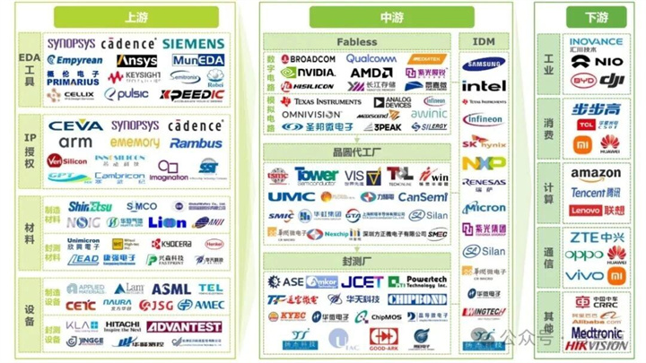 The semiconductor industry chain covers upstream software and hardware materials and equipment, midstream chip design, manufacturing, and testing, as well as downstream terminal application links.